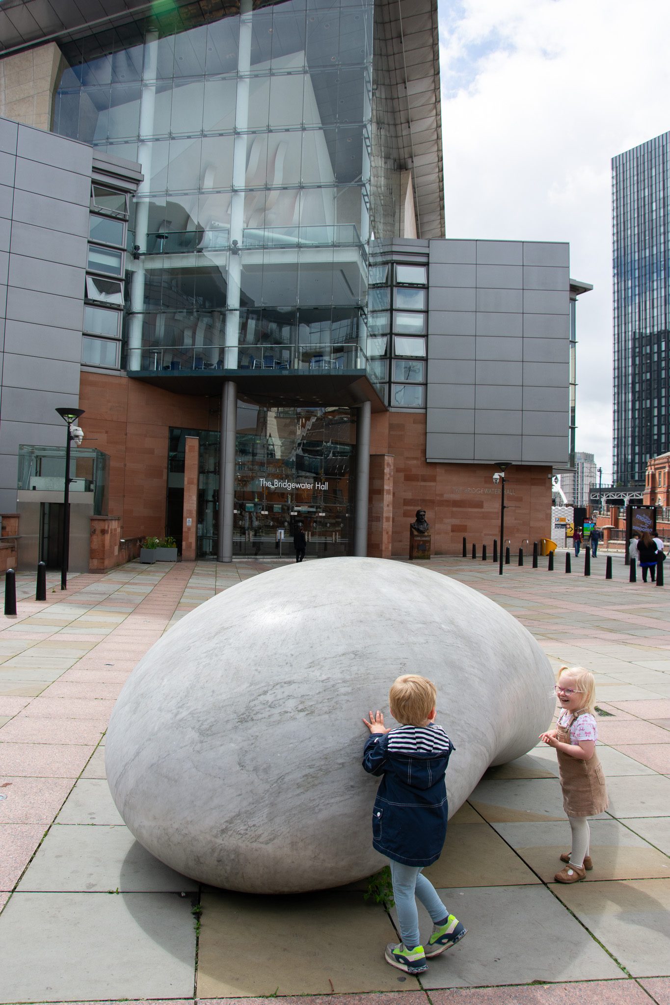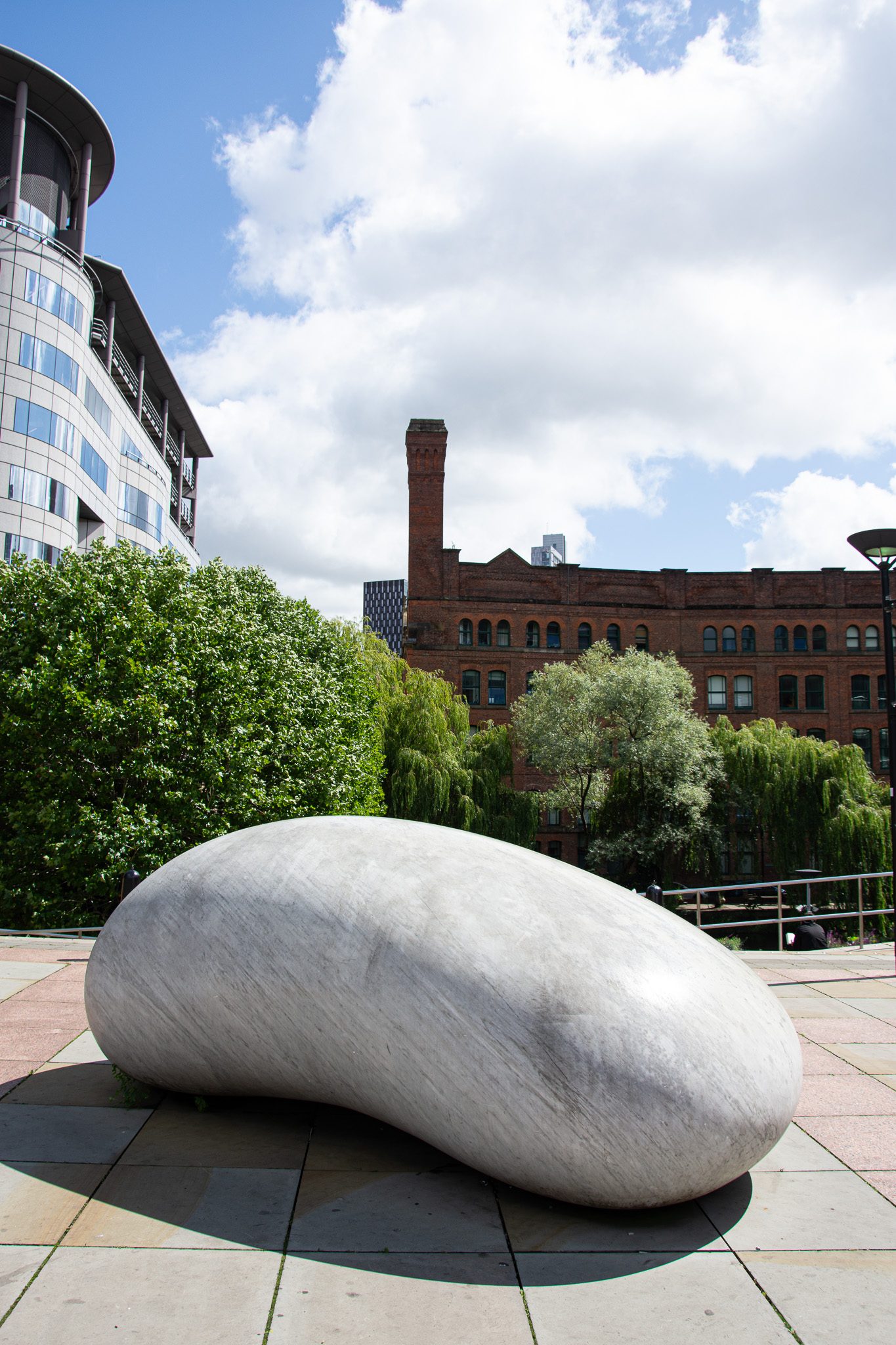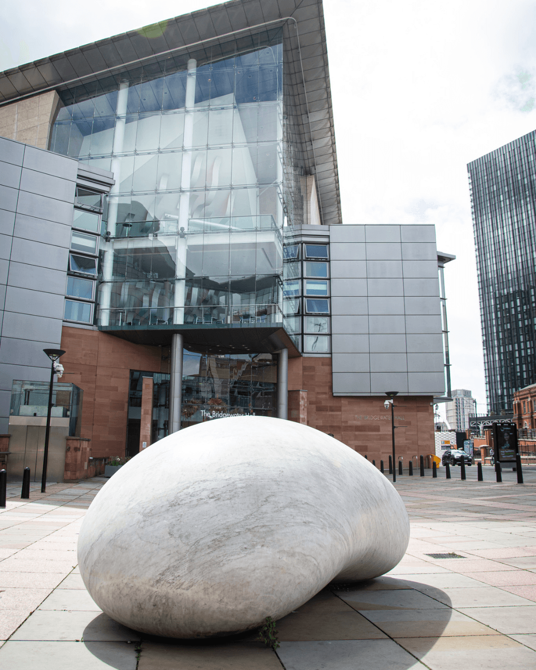 The giant pebble at The Bridgewater Hall that may bring you luck!