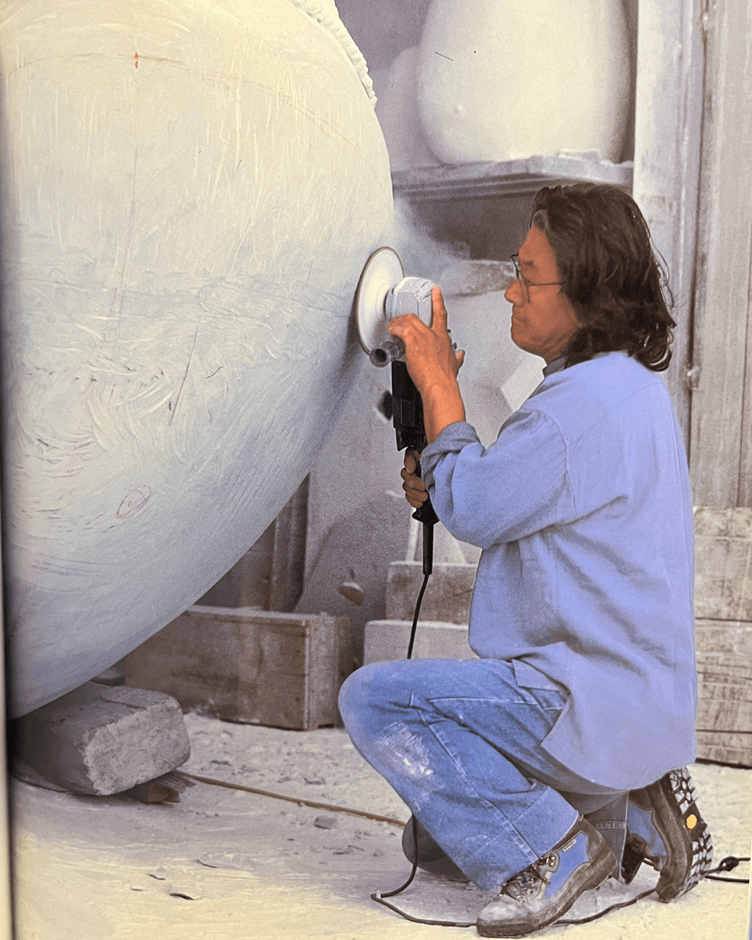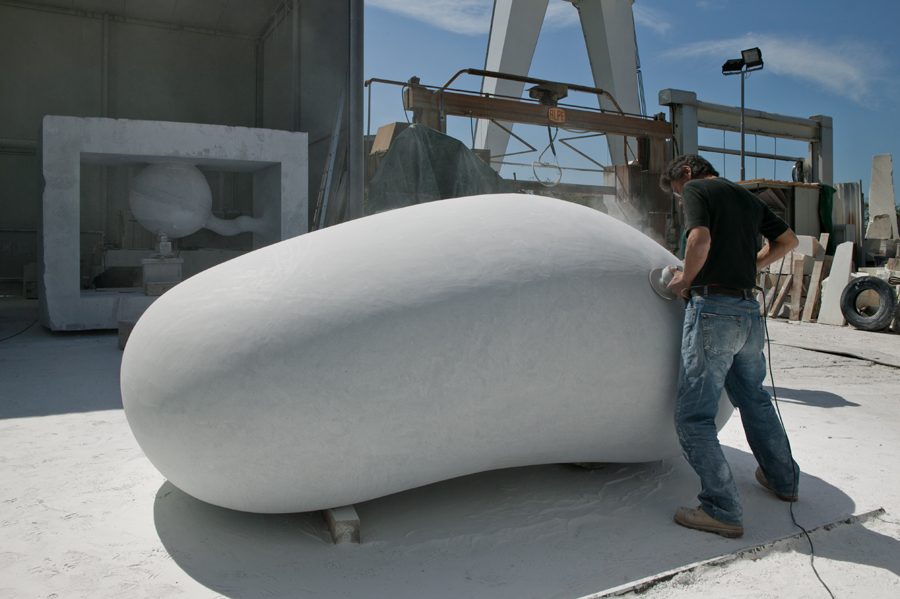 He feels it is vital to maintain close daily contact with fine stone and with the ancient skills of working it, so the Manchester sculpture was conceived and executed in his workshop at Pietrasanta, close to the celebrated marble quarries of Carrara.