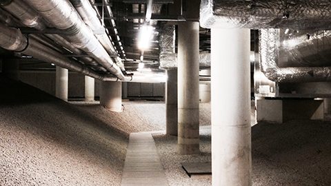 It’s also close to impossible to describe what it’s like to climb down actually beneath the building and explore the undercroft on a public building tour. As you descend the stairs, there’s a noticeable change in the atmosphere – the sound deadens, interrupted only by the hum of service pipes. You’re faced with a grey moonscape, dotted with the concrete pillars that support the auditorium above. You can see the earthquake bearings through the clear sides of the green boxes they’re housed in. Normally off limits to the public, it’s an experience like no other.
