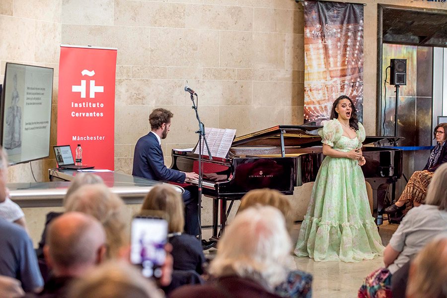 May saw the return of Live at Lunchtime our annual free, relaxed Friday concerts featuring local performers in our Stalls Foyer – perfect if you’d like to discover some new music during your lunchbreak or trip into town! Beautiful vocal ensemble, The Mancunium Consort, kicked off the series on the 3 May with a bang, performing stunning choral repertoire to a packed-out audience. Next up on 10 May we had students from Chetham’s School of Music. The young talent blew everyone away as Claire (French horn), Elizabeth (vocals) and Lily (flute) performed a range of music from Strauss to Schumann. On 17 May, RNCM graduates, NOMAD brought their extremely moving original piece ‘The Gardener’s Daughter’ to Live at Lunchtime. Through a combination of viola, violins, cello and opera this piece explored themes of grief, love, and loss in an immersive performance. Moving onto 24 May, Mali Hayes delivered a stunning soulful performance, bringing a setlist of beautiful original songs to the Hall. Last Friday 31 May, we were treated to an extra special performance from Ricardo Gosalbo (pianist) and Julieth Lozano (soprano). In collaboration with Instituto Cervantes Manchester, as well as offering amazing music, the duo took us through a fascinating history of Zarzuela – a unique lyrical genre with its roots in 17th Century Spain. Live at Lunchtime is back on Friday 14 June with a performance from Milap’s Kousic Sen and Giuliano Modarelli.